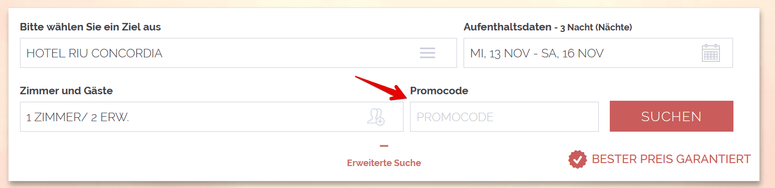 Als Beispiel haben wir uns mal das Hotel Riu Concordia auf Mallorca angeschaut. Regulär kostet dort ein Zimmer vom 13. bis 16. November 2024 knapp 309€: