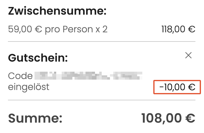 Anschließend reduziert sich der Gesamtbetrag um den Gutscheinwert: