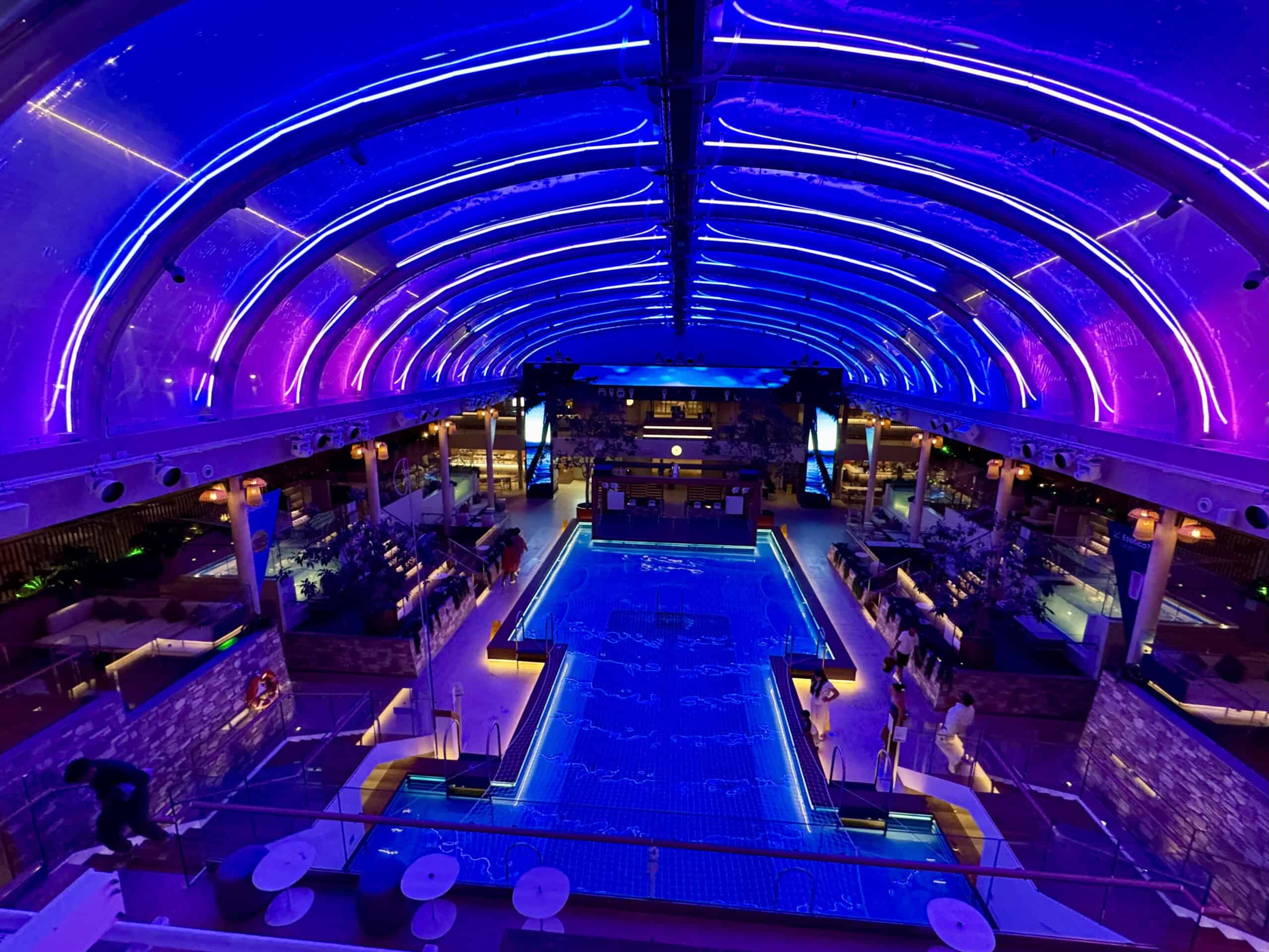 Auf der Costa Toscana gibt es vier Pools: zwei jeweils Steuer- und Backbord im Außenbereich auf Deck 17 und einen Innenpool im Beach Club auf Deck 16. Diese Pools sind explizit für Familien und Kinder gedacht. Erwachsene, die Ruhe suchen, finden auf Deck 18 im Adults Only-Bereich einen Außenpool sowie auf Deck 7 den weiteren Adults Only.