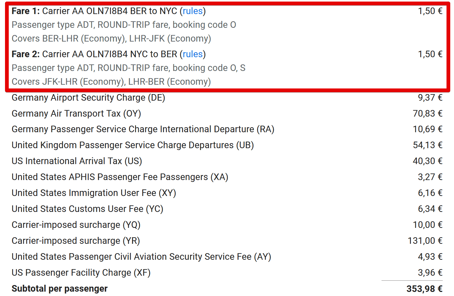 Beim Base Fare (deutsch: Basistarif oder auch reiner Flugpreis) handelt es sich um den eigentlichen Preis, den die Airline für das Ticket verlangt: