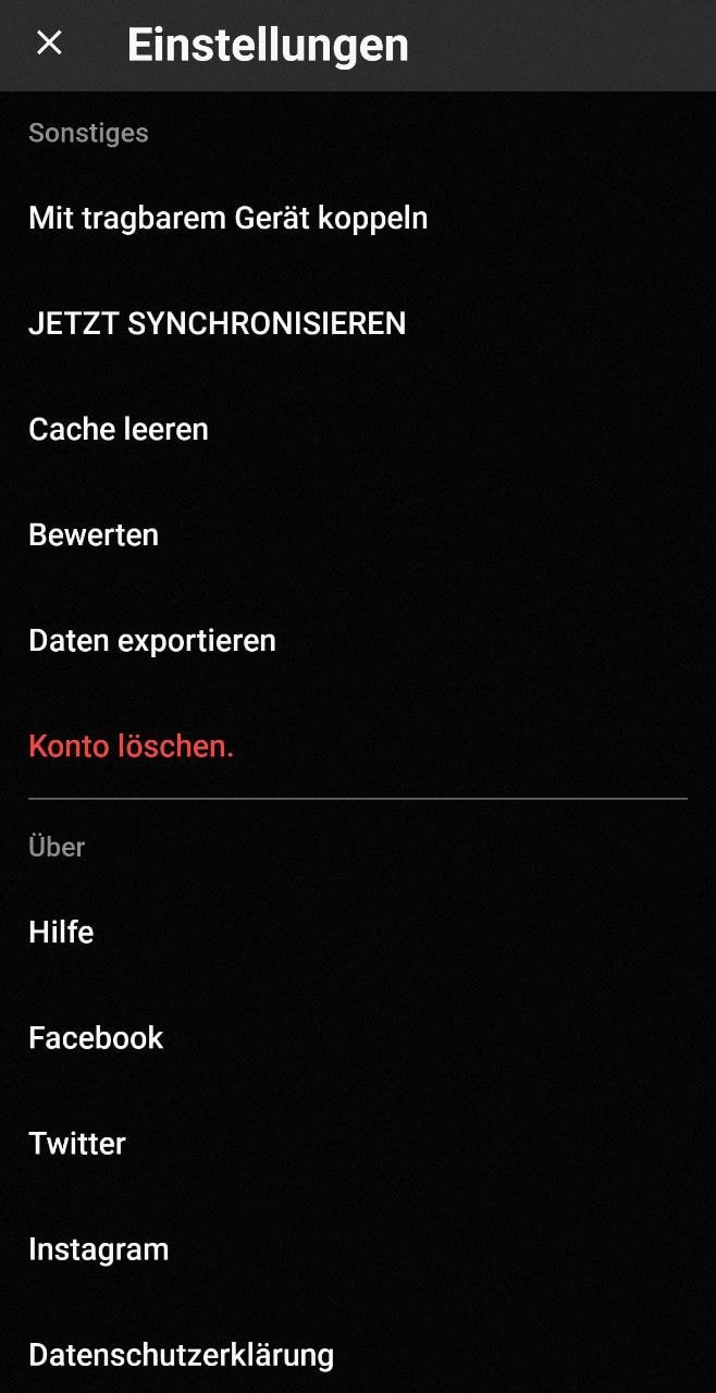 - Dort findet ihr die Möglichkeit, eure Daten zu exportieren.