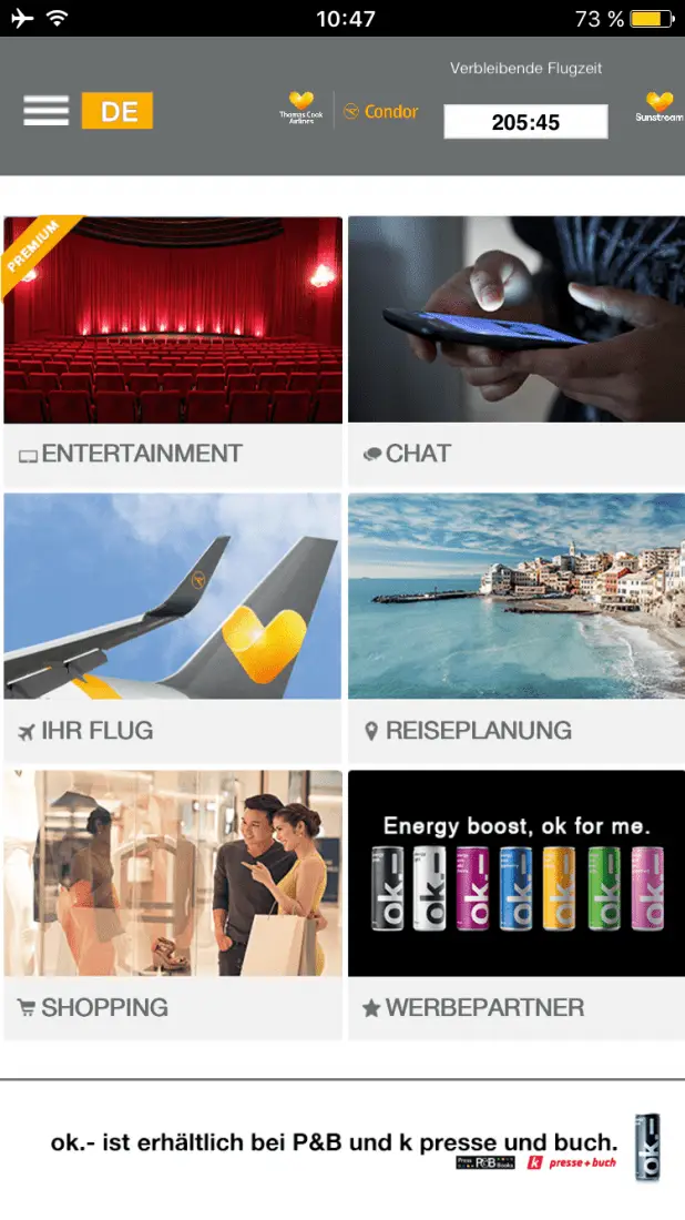 Ein wenig stöbern konnte man bereits in den letzten Tagen bei Condor auf der Website – Condor – Mobile Bordunterhaltung – und so erfuhr man bereits vorab, dass Condor aktuell die Kurz- und Mittelstreckenflotte mit einem entsprechenden System ausstattet und diese Ausstattung ist zu mehr als 90% abgeschlossen. Interessant dabei, der mobile Zugriff auf Inhalte wird bei allen Airlines im Thomas Cook Konzern identisch sein und somit den Passagier nicht damit überfordern, für jede Airline eine eigene Begleit-App nutzen zu müssen. Eine Integration in bestehende Apps von Airlines des Konzerns soll im Idealfall schrittweise erfolgen.