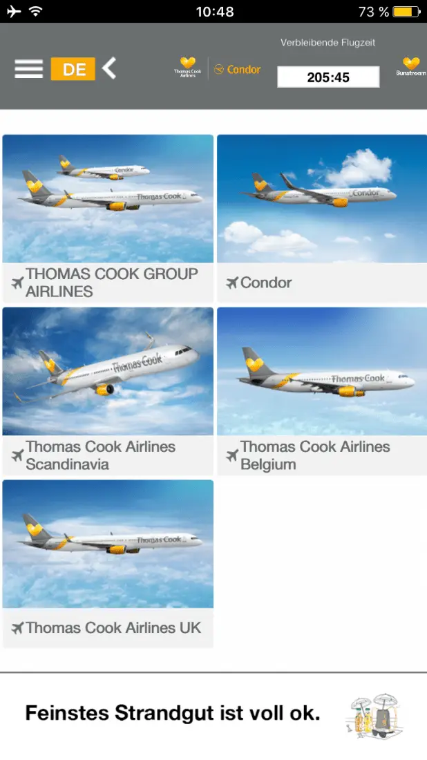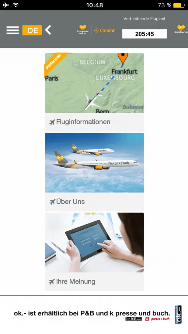 Das Layout sowie die Benutzeroberfläche sind dezent und intuitiv gestaltet und stellen den Benutzer nicht vor größere Herausforderungen. Das könnte sich natürlich ändern, sobald weitere Möglichkeiten ihren Weg in die App finden werden. Eine dort bereits abgelegte Feedback Möglichkeit erlaubt allerdings etwaige Fehler der App selbst und Probleme bei der Benutzung noch an Bord zu melden. Die Entwickler planen eine hohe Frequenz für Anpassungen in den App Stores beider großer Plattformen (iOS und Android – eine Windows basierte Version der App ist vorerst nicht geplant) um eine größtmögliche Stabilität und Aktualität zu gewährleisten. Es war mehr als erfrischend, das Konzept nicht nur von den Verantwortlichen bei Condor / der Thomas Cook Airline Group erläutert zu bekommen, sondern auch in den Dialog zu den Entwicklern der Applikation treten zu können.