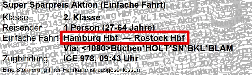 Diese Gleichstellung war bei der Buchung nicht direkt zu erkennen, aber spätestens bei Zustellung des Tickets für die Fahrt. Hierbei galt: Wenn auf dem Ticket nur ein Stadtname aufgedruckt ist, greift die Gleichstellung. Das war fast immer der Fall, mit Ausnahme des Super Sparpreis Aktion für 12,90€ bzw. 14,90€: