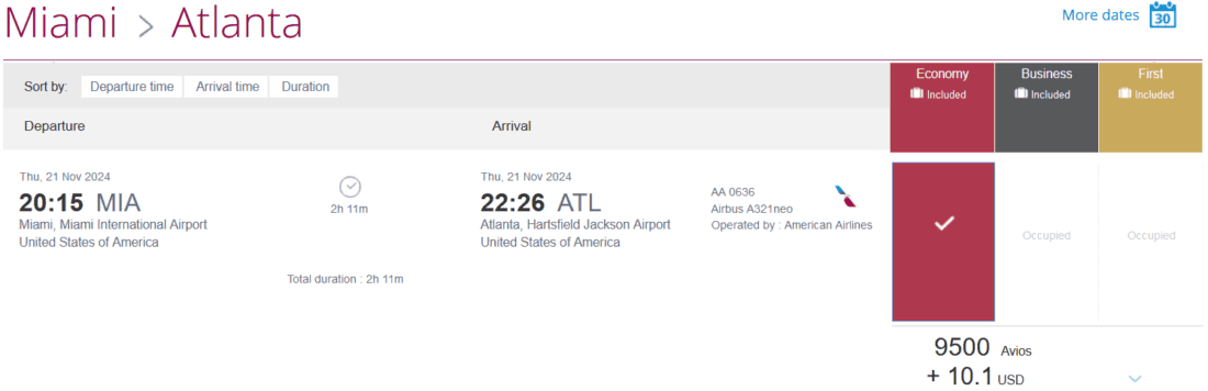 Eine Alternative wäre die Buchung über Finnair Plus. Laut Award Chart fallen dort innerhalb der USA 11.000 Meilen für die Economy Class und 30.000 für die Domestic First Class an – und das auf Wunsch inklusive Anschlussflug. Allerdings kommt es wohl öfters vor, dass bei der Buchung (per Telefon / WhatsApp) Anschlussflüge doch separat berechnet werden.
