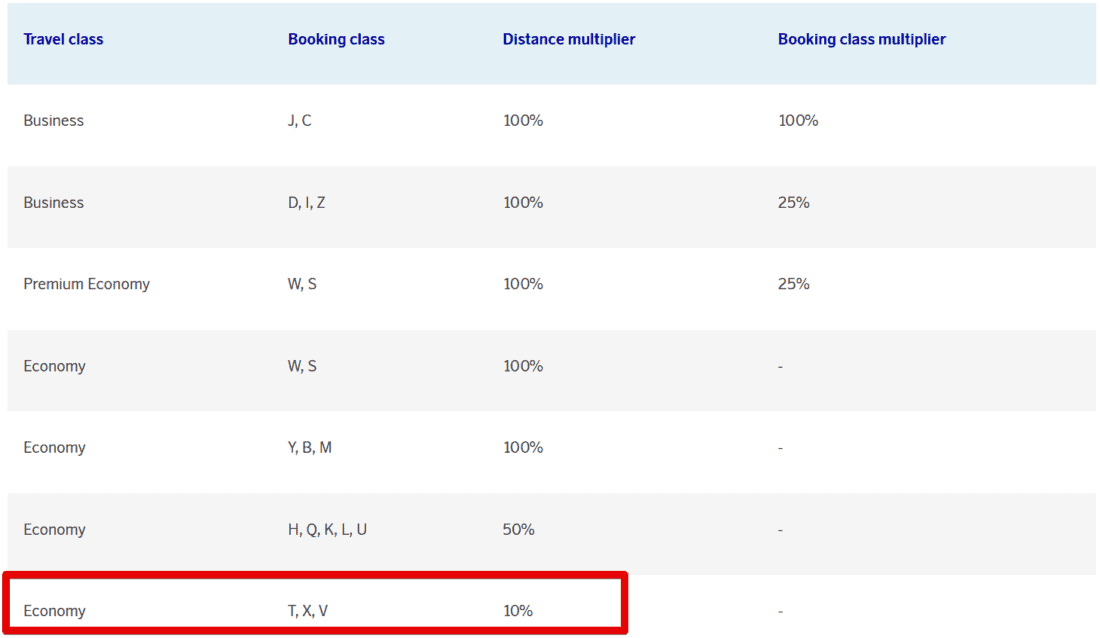 - Nur 10% Meilen in den Buchungsklassen T, X und V