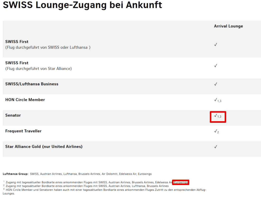 Auf der Lufthansa-Website und Austrian-Website wurden die Zugangsbestimmungen übrigens noch nicht angepasst. Die Regeln auf der Swiss-Website hingegen wurden bereits geändert, und bergen ein interessantes Detail. Denn demnach wäre nun auch mit Eurowings-Ticket der Loungezugang bei Ankunft gestattet: