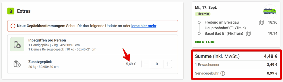 Und vorsicht! Nimmt Flixtrain Änderungen an Buchungen mit der alten Regelung vor streichen die einem kommentarlos das Gepäck bis 20 kg und man hat nur noch 10 kg inklusive.