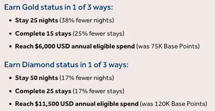 Hilton hat außerdem Änderungen an den Statusanforderungen für den Gold- und Diamond-Status angekündigt.