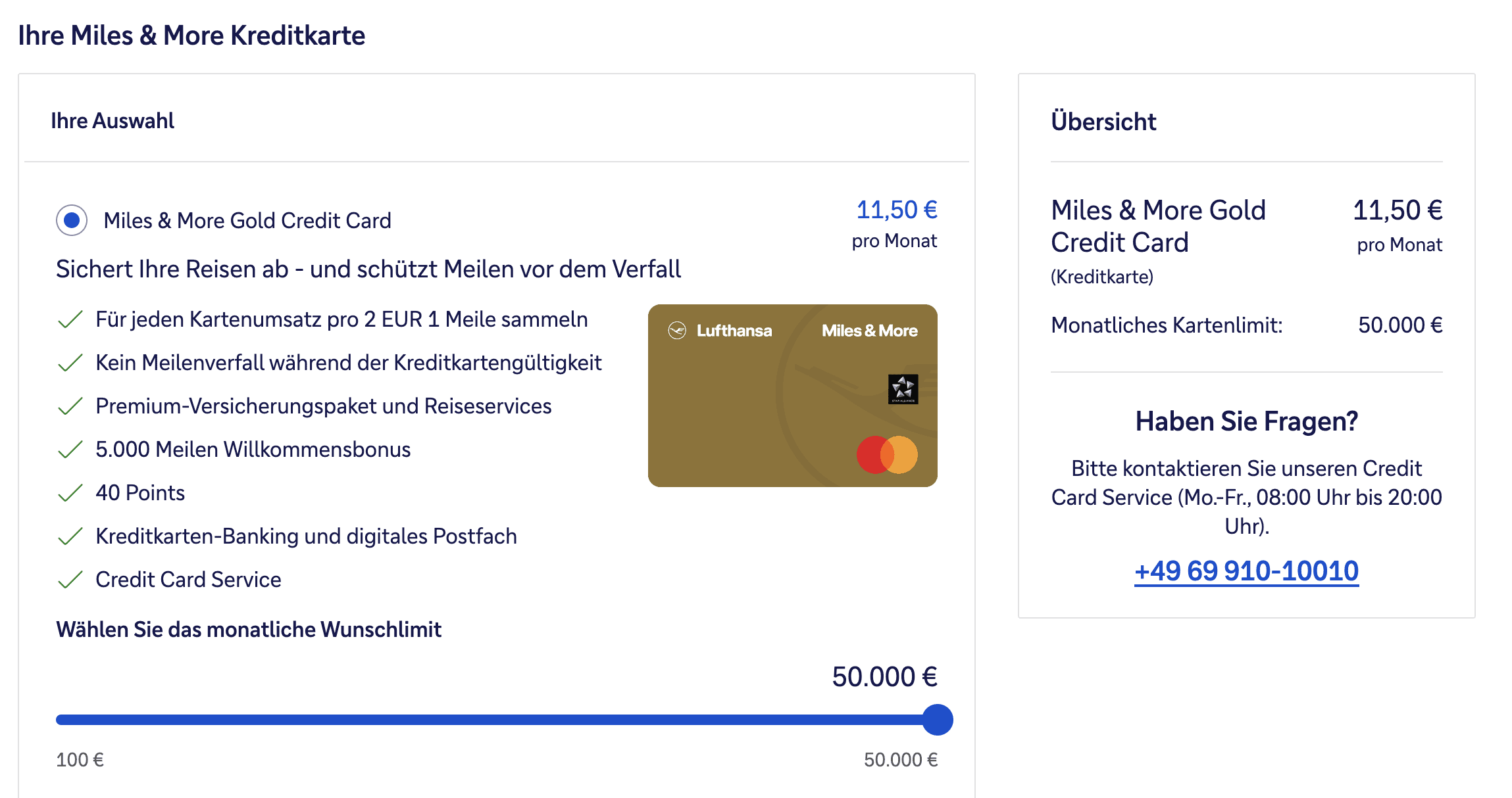 Bis zu 50.000€ sind als Wunschlimit möglich. Die Vergabe des Limits ist aber bonitätsabhängig.