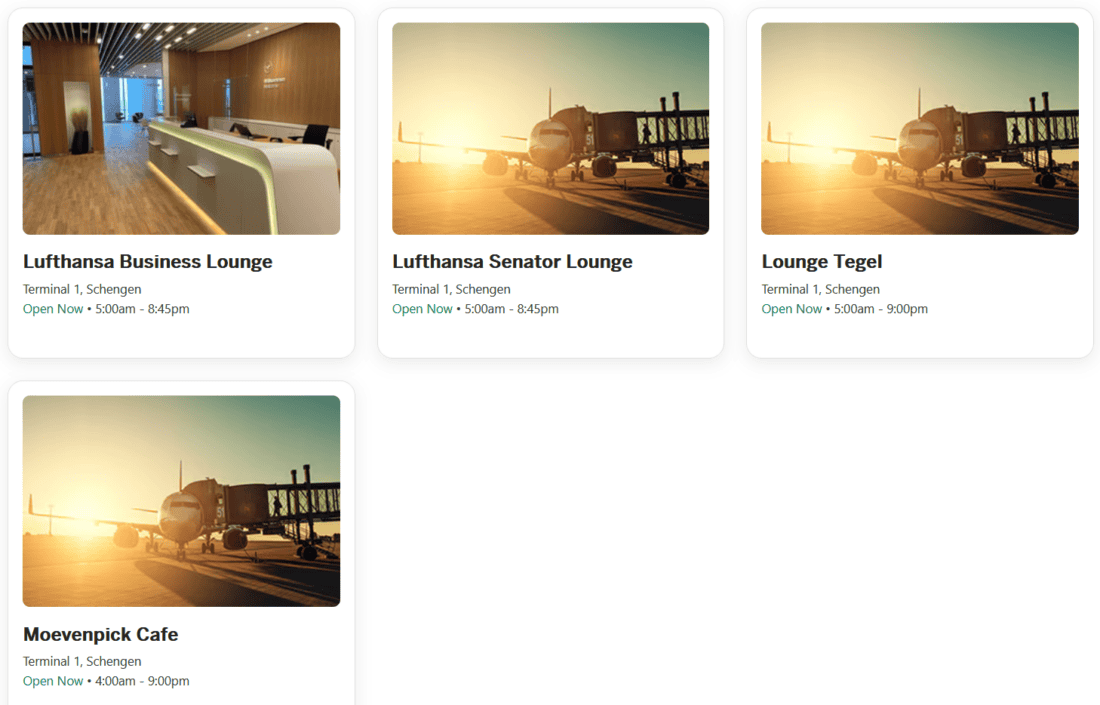 Aktuell werden im Amex Lounge Finder beide Möglichkeiten, d.h. sowohl das Mövenpick Café als auch die Tegel-Lounge mit aufgeführt. Mit Ticket der Lufthansa Group gäbe es auch dort Zugang, sodass insgesamt 4 Lounges gelistet werden. Zur Suche muss aber die amerikanische Seite benutzt werden – die deutsche Version kennt auch 4 Jahre nach Eröffnung nur SXF