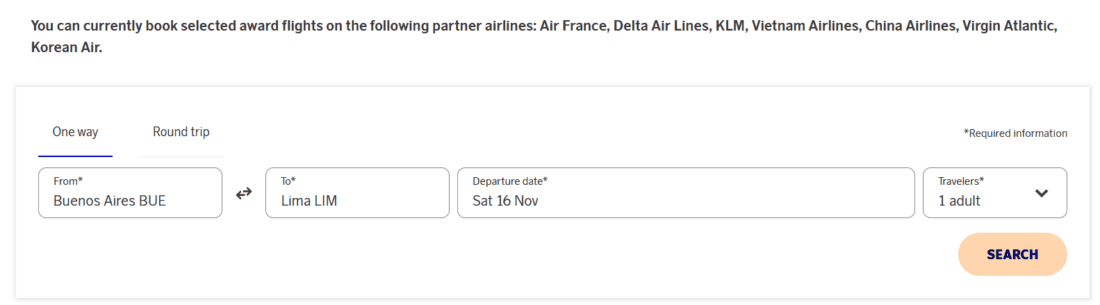 Wer einen Prämienflug mit SkyTeam-Partnern buchen möchte, kann das über die Website Partner Award Flights: