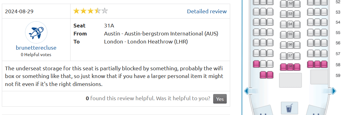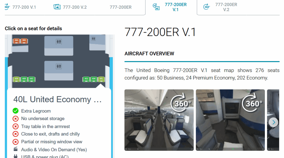 Scrollt ihr unter die grafische Ansicht, findet ihr oftmals auch Informationen zum Sitzabstand, Hersteller & Modell des Sitzes, Steckdosen, Unterhaltungssystem usw. Allerdings ist AeroLopa keine direkte Alternative zu SeatGutu. So könnt ihr nicht direkt erkennen, ob ein Sitz „gut“ oder „schlecht“ ist, z.B. weil sich die Rückenlehne nicht verstellen lässt. Zudem gibt es keine Erfahrungsberichte einzelner Sitze.