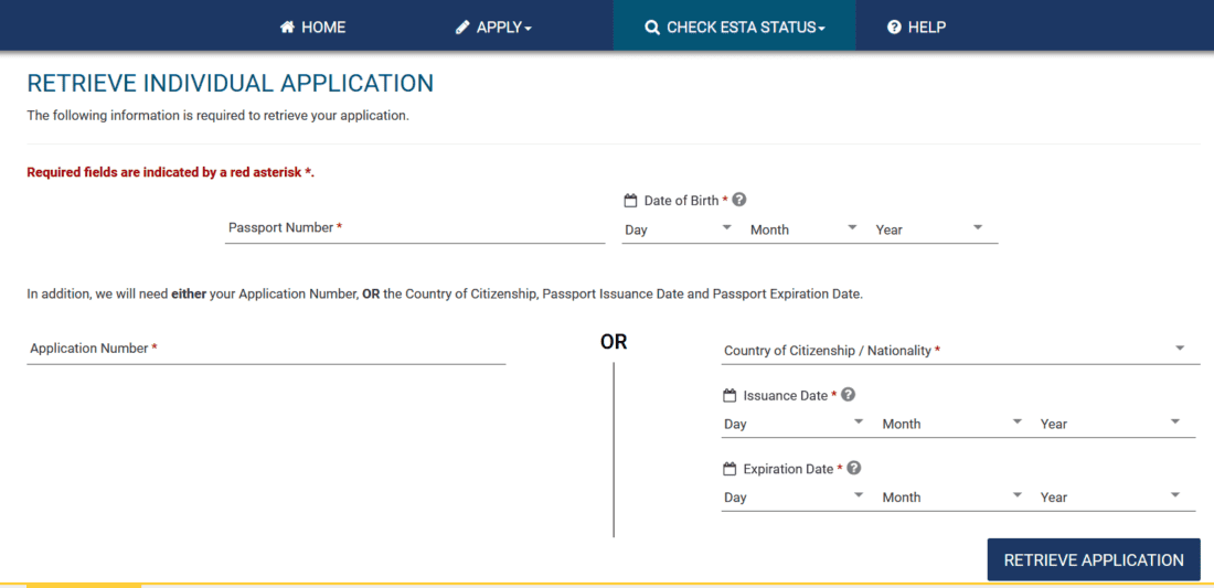 Den aktuellen Status könnt ihr auch auf der ESTA-Seite prüfen. Die entsprechende Application Number habt ihr nach der Zahlung per E-Mail erhalten. Wenn ihr sie nicht zur Hand habt, reichen auch ein paar Passdaten: